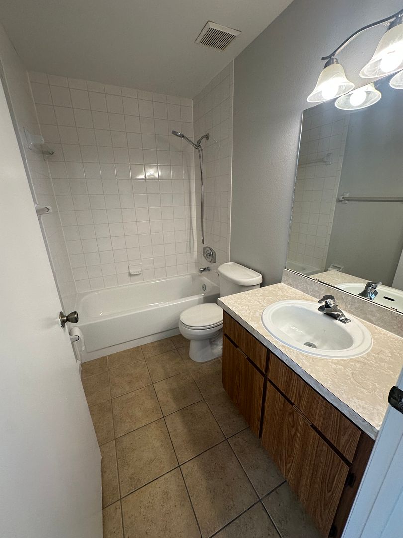 Welcome to this bright and freshly painted rental home — completely carpet-free for easy maintenance and modern living! Step inside to an open floor plan with high ceilings, an inviting living space, and a spacious primary suite featuring a private en-suite bath and a walk-in closet.